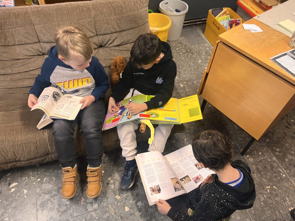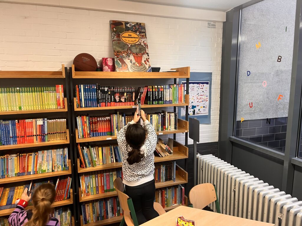 Alle zwei Wochen wird die Bücherei zur Ausleihe geöffnet. Die Kinder können sich dann für zwei Wochen ein Buch ausleihen – natürlich kostenlos!