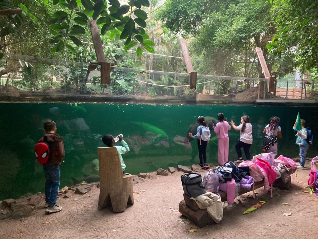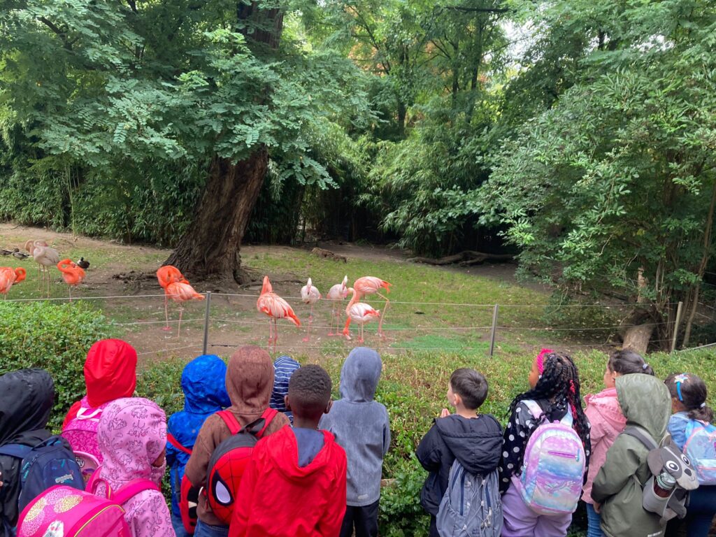 Am 08.09.25 waren wir mit unseren I-Dötzchen im Duisburger Zoo. Ein Bus hat die 31 Erstklässler um 8:30 Uhr von der Schule abgeholt und uns zum Zoo gefahren. Dort erwarteten uns verschiedene Stationen zum Beispiel zum Thema „Ernährung der Tiere“ oder „Zoo mit allen Sinnen“. Um 11:30 Uhr begrüßte Oberbürgermeister Sören Link alle Erstklässler im Delfinarium. Anschließend bestaunten wir die Delfin-Show und wurden bei einigen Sprüngen sogar etwas nass. Danach ging es leider schon wieder zurück zur Schule. Das war ein tolles Erlebnis für die Delfinklasse!