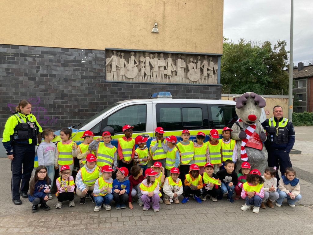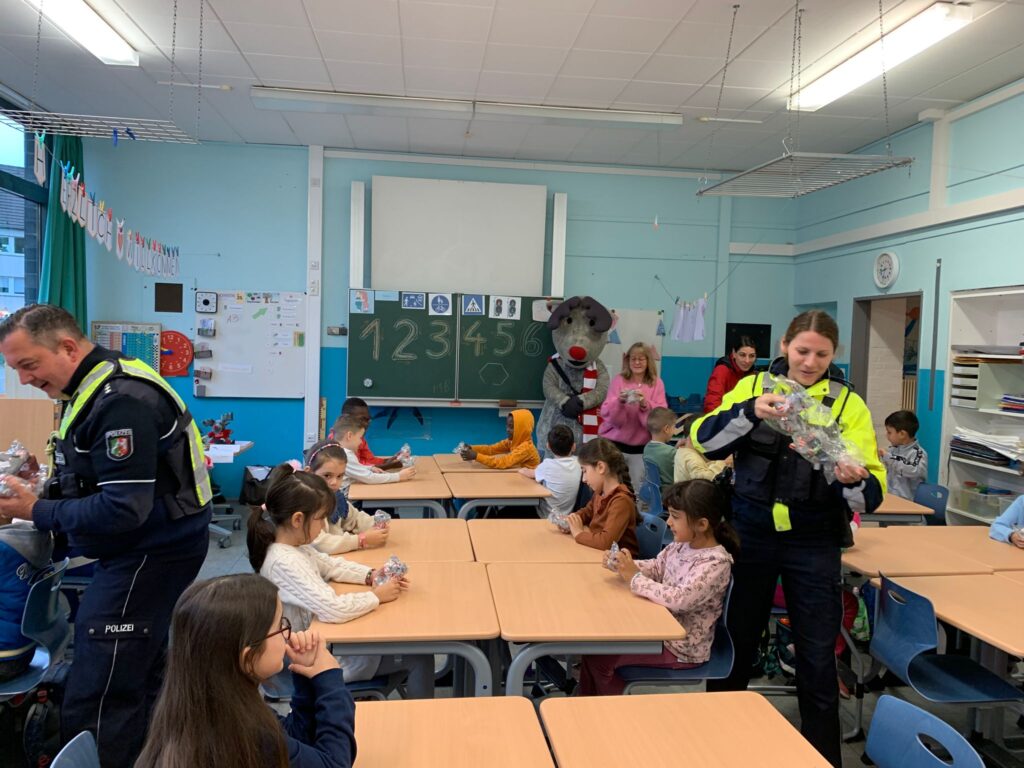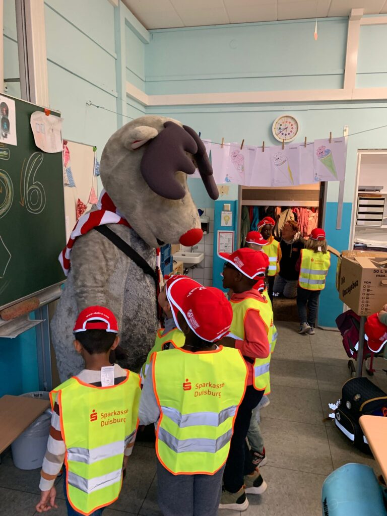Am 25.09.25 hatte die Delfinklasse Besuch von einem Elch namens EMIL. Zusammen mit der Verkehrssicherheitspolizei klärt EMIL , das Masskottchen von Radio DU, Erstklässler an unserer Schule über Gefahren im Straßenverkehr auf und sorgt dafür, dass die Kinder morgens, wenn es noch dunkel ist, bestens gesehen werden. Außerdem wurden süße Emil Reflektorelche sowie Warnwesten und Cappies mit Reflektorstreifen verteilt. Danke RADIO DU für diese tolle Aktion!!!