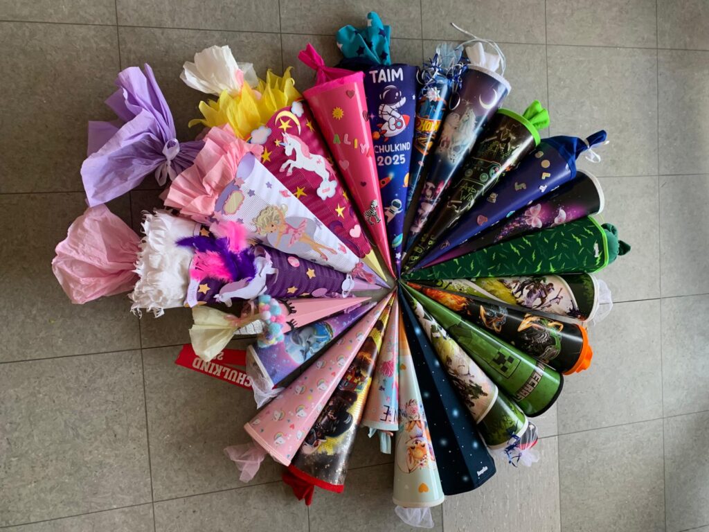 Am 27.08.25 begann für unsere 32 I-Dötzchen endlich der Ernst des Lebens! Nach einem bunten Gottesdienst wurden die Erstklässler von Frau Bikaki an unserer Schule freundlich empfangen. Die Drittklässler hatten ein kleines Programm vorbereitet, worüber sich auch die Eltern der neuen Schüler freuten. Danach ging es mit den Klassenlehrerinnen Frau Luca und Frau Braun in den ersten Unterricht. Zum Abschluss durften die Kinder auf dem Schulhof Seifenblasen mit guten Wünschen in den Himmel pusten. Es war ein gelungener Start in den Schulalltag!